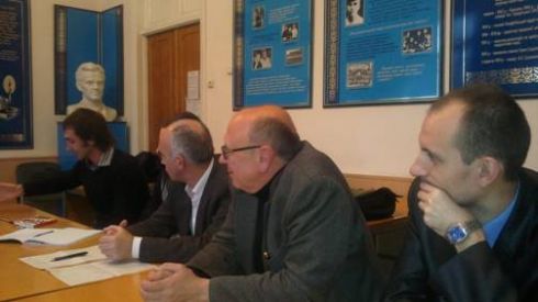 Зліва направо: професор ПУЕТ Петренко І.М., доцент Східноукраїнського національного університету ім. В.Даля Ковальова А.Д., професор Державної Вищої Школи Східноєвропейських Студій в Перемишлі Ярослав Мокляк, доцент ПУЕТ Петренко С.М., професор Черкаського національного університету ім. Б.Хмельницького Присяжнюк Ю.П.