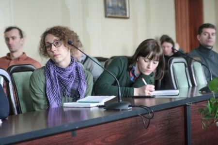 Зліва направо: Ярослав Мокляк – професор Державної Вищої Школи Східноєвропейських Студій в Перемишлі; перекладач; Ніколь Моне, віце-президент американської асоціації Центральної Східноєвропейських Студій (Колумбія, Місурі, США); Давід Боргмайєр, президент американської асоціації Центральних Славістичний Студій (Сент-Луїс, Місурі, США); Ян Драус, ректор Державної Вищої Школи Східноєвропейських Студій в Перемишлі,