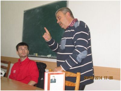 Вчені-дослідники розповіли студентам І курсу про свої останні наукові пошуки. В.П.Рекрут презентував книгу, співавтором якої він є, це – «Нариси життя Літинщини (1917-1921 рр.): революційні події та повсякденність». В.Я.Ревегук поділився своїми останніми науковими здобутками, пов’язаними з дослідженнями історії Полтави в роки Національної революції 1917-1921 років та в роки нацистської окупації. М.В.Аліман розповів студентам про працю, співавтором якої він є, яка присвячена вона відомому державному діячеві, кооператору, економісту Борису Мартосу.